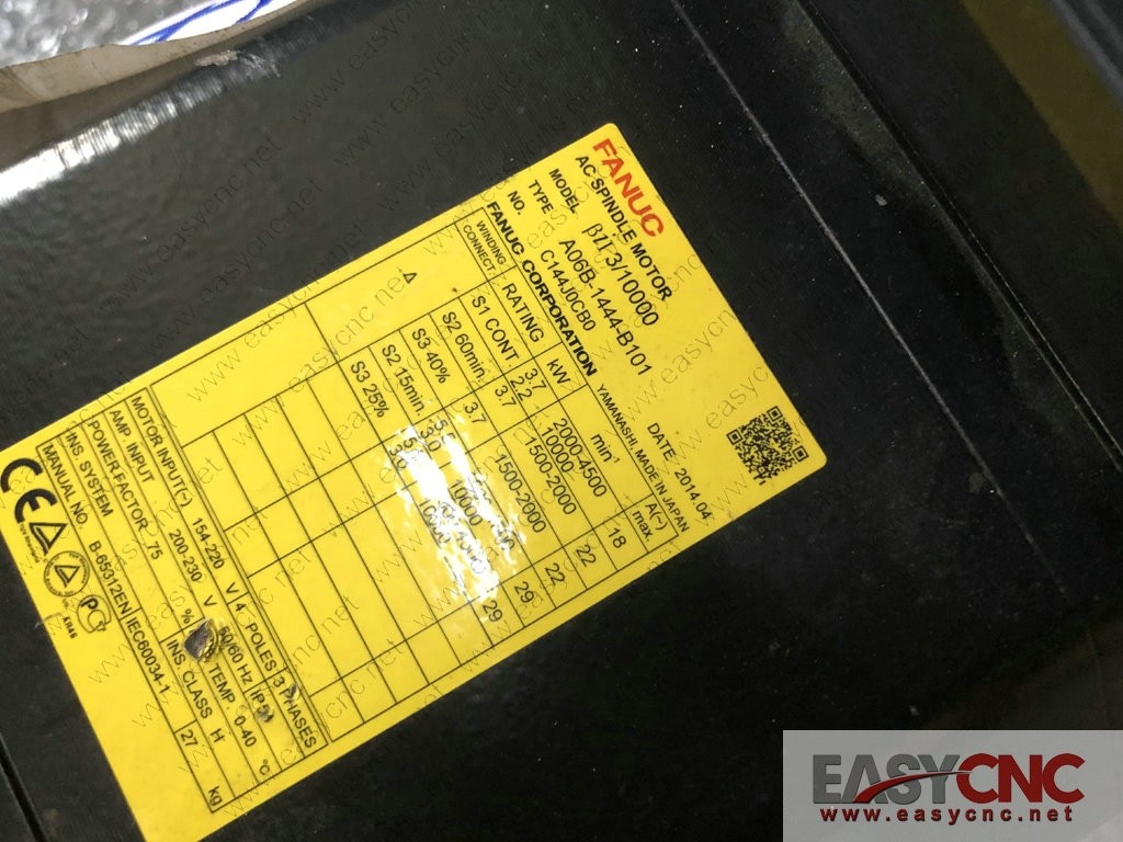 A06B-1444-B101 Fanuc ac spindle motor used .Welcome to EASYCNC online shopping! Products that are IN STOCK could be delivered to you within 24 hrs.