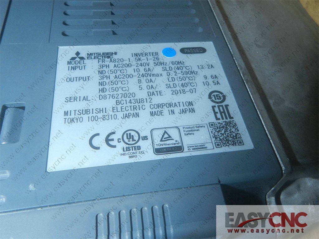 FR-A820-1.5K-1-26 Mitsubishi inverter used .Welcome to EASYCNC online shopping! Products that are IN STOCK could be delivered to you within 24 hrs.