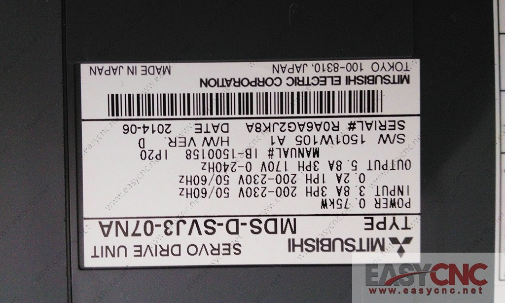 MDS-D-SVJ3-07NA Mitsubishi servo drive unit new .Welcome to EASYCNC online shopping! Products that are IN STOCK could be delivered to you within 24 hrs.